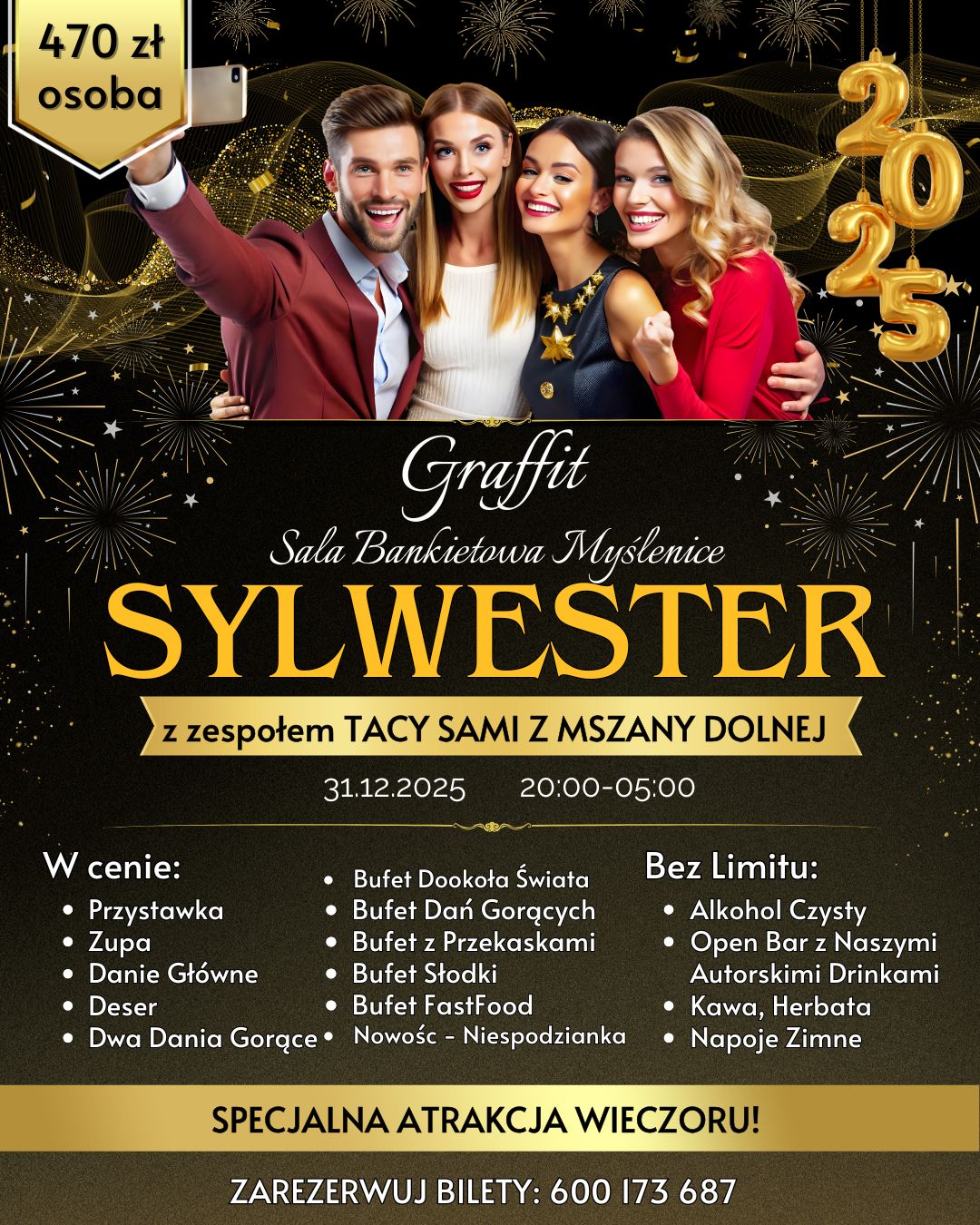 Sylwester 2025/2026 w Myślenicach – Sala Bankietowa Graffit