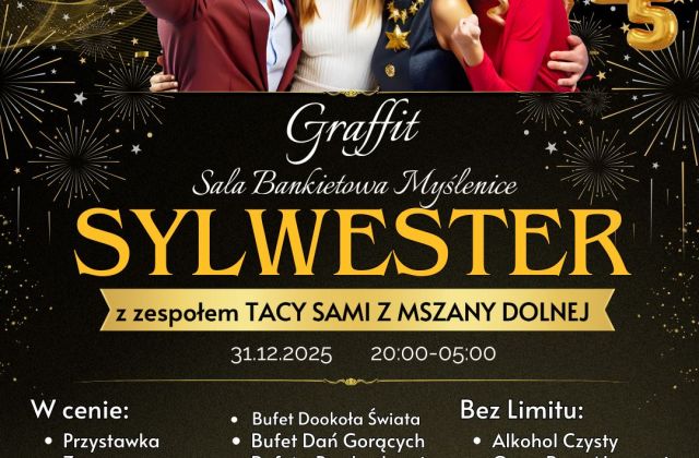 Sylwester 2025/2026 w Myślenicach – Sala Bankietowa Graffit